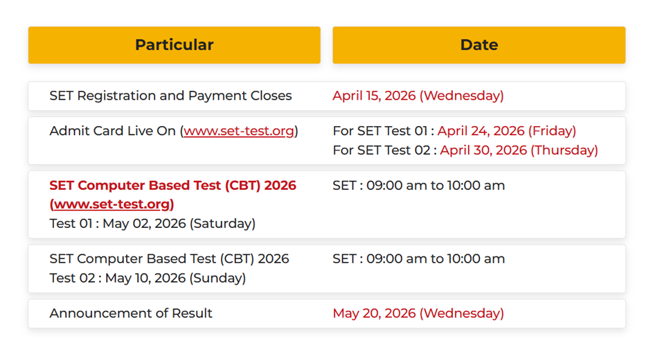 Important Dates for SET 2026
